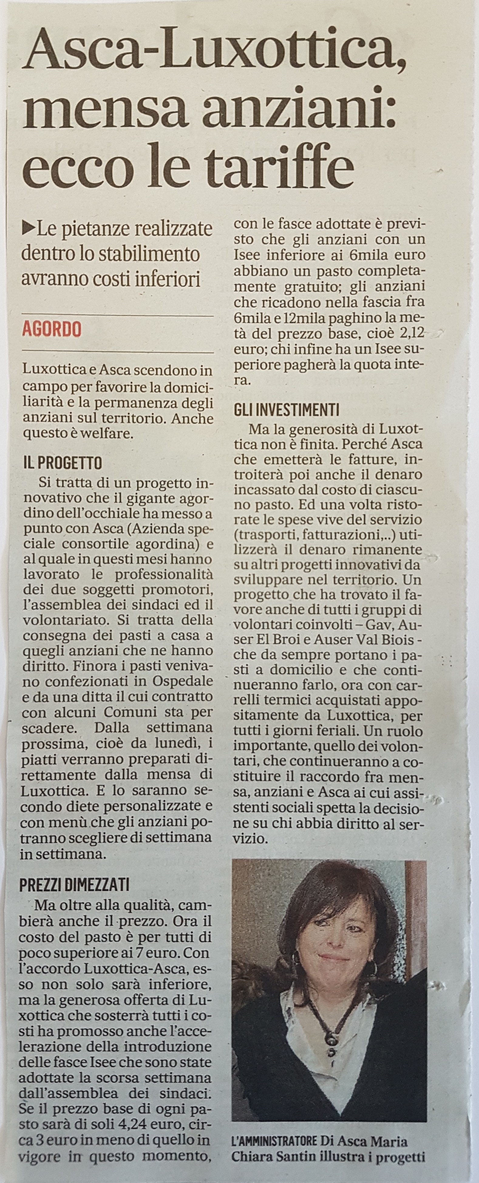 ASCA – Luxottica, mensa anziani: ecco le tariffe