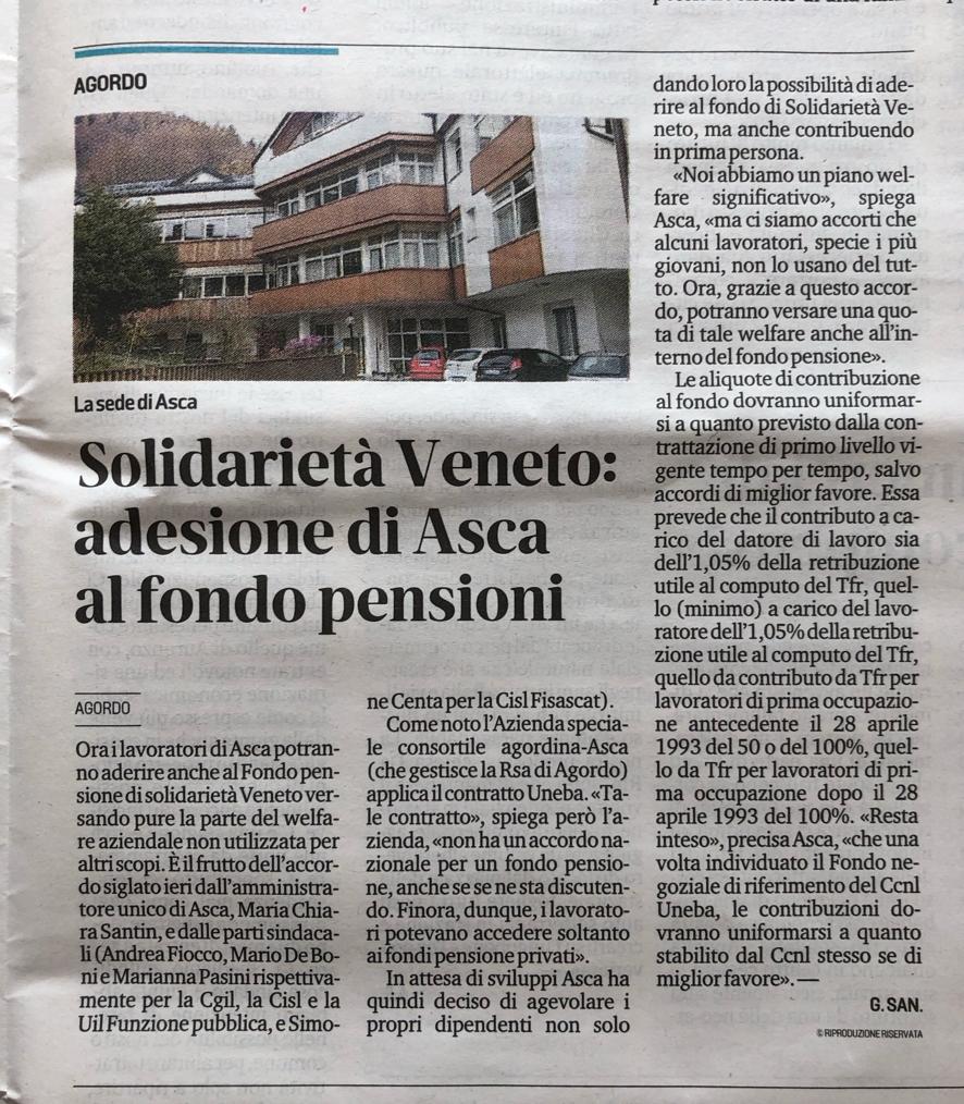 Siglato in ASCA un accordo con le OOSS per agevolare i collaboratori con la possibilità di aderire al fondo di Solidarietà Veneto. Estesa la possibilità di versare nel fondo la parte del PDR/Welfare Aziendale non utilizzata per altri scopi.